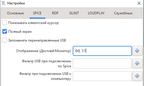 1. Если на физической машине ТК 2 монитора, в ВМ тоже 2, необходимо 1 к 1, то соответствие будет выглядеть 0:0;1:1. 2. Если на физической машине ТК 3 монитора, в ВМ 2, необходимо 0 (первый) к 2 (третий) физический монитор, то соответствие будет выглядеть 0:0;1:2.