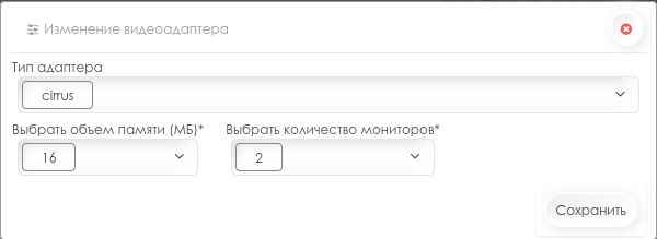 Необходимо в среде SpaceVM открыть подробную информацию о ВМ и выключить питание. Перейти в раздел Информация - Графический адаптер.