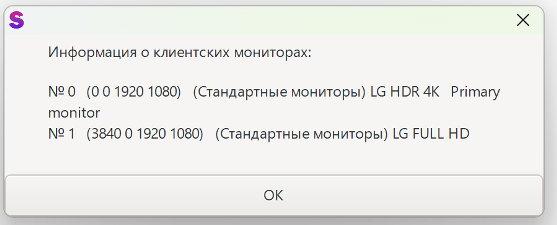 - Для того чтобы узнать идентификаторы (номера) текущих клиентских мониторов, необходимо нажать на