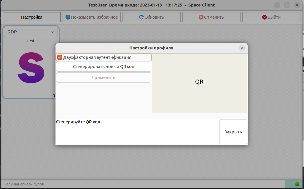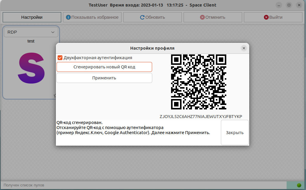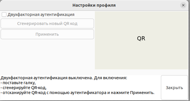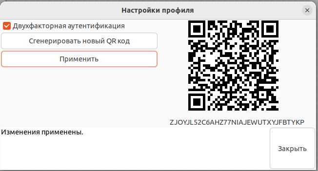 При включении двухфакторной аутентификации при каждой авторизации будет требоваться одноразовый пароль, генерируемый приложением-аутентификатором (система тестировалась с приложениями: Яндекс.Ключ, Google Authenticator).