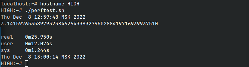 Производительность в зависимости от приоритета vCPU ВМ