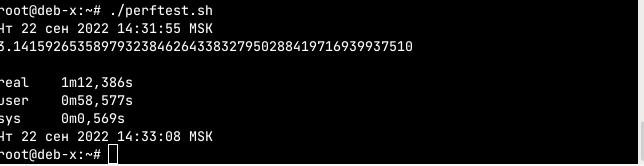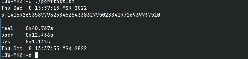 Выполнены два теста с параметром Limit = Unlimited и Limit = 333 MHz. Видно, что скорость выполнения теста при уменьшении тактовой частоты уменьшается пропорционально.
