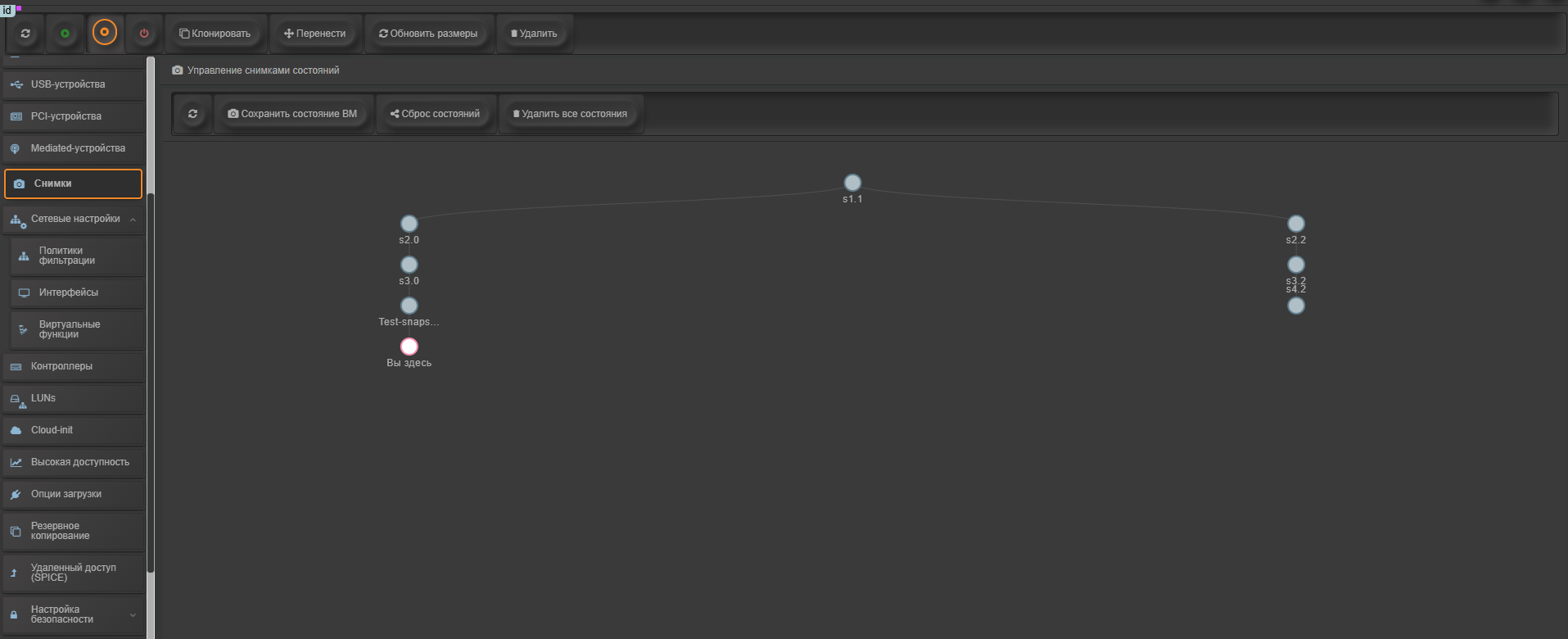 Снимки состояний ВМ в среде SpaceVM